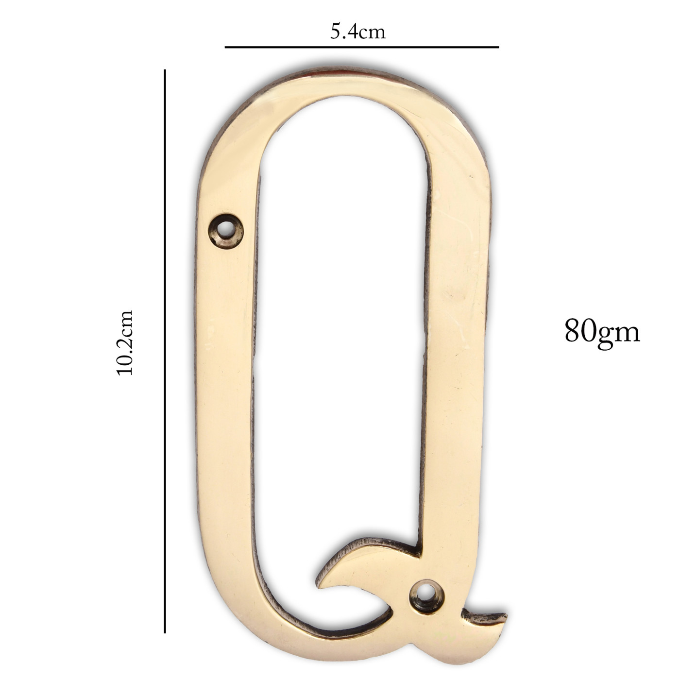 - Product Details: 1 Alphabet (Q) | 2 Installation Screws | Height- 4 inches | Material: Brass.