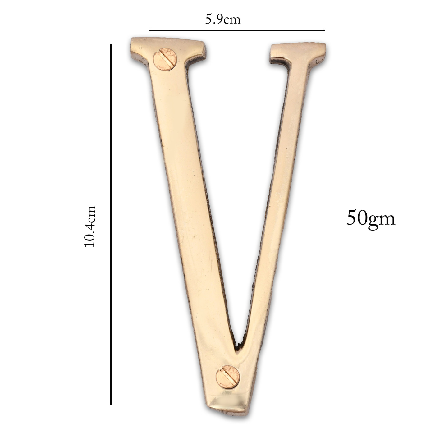 • Product Details: 1 Alphabet (V) | 2 Installation Screws | Height- 4 inches | Material: Brass.
