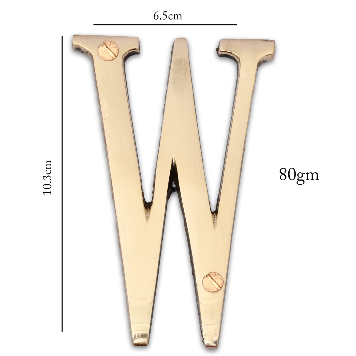 - Product Details: 1 Alphabet (W) | 2 Installation Screws | Height- 4 inches | Material: Brass.