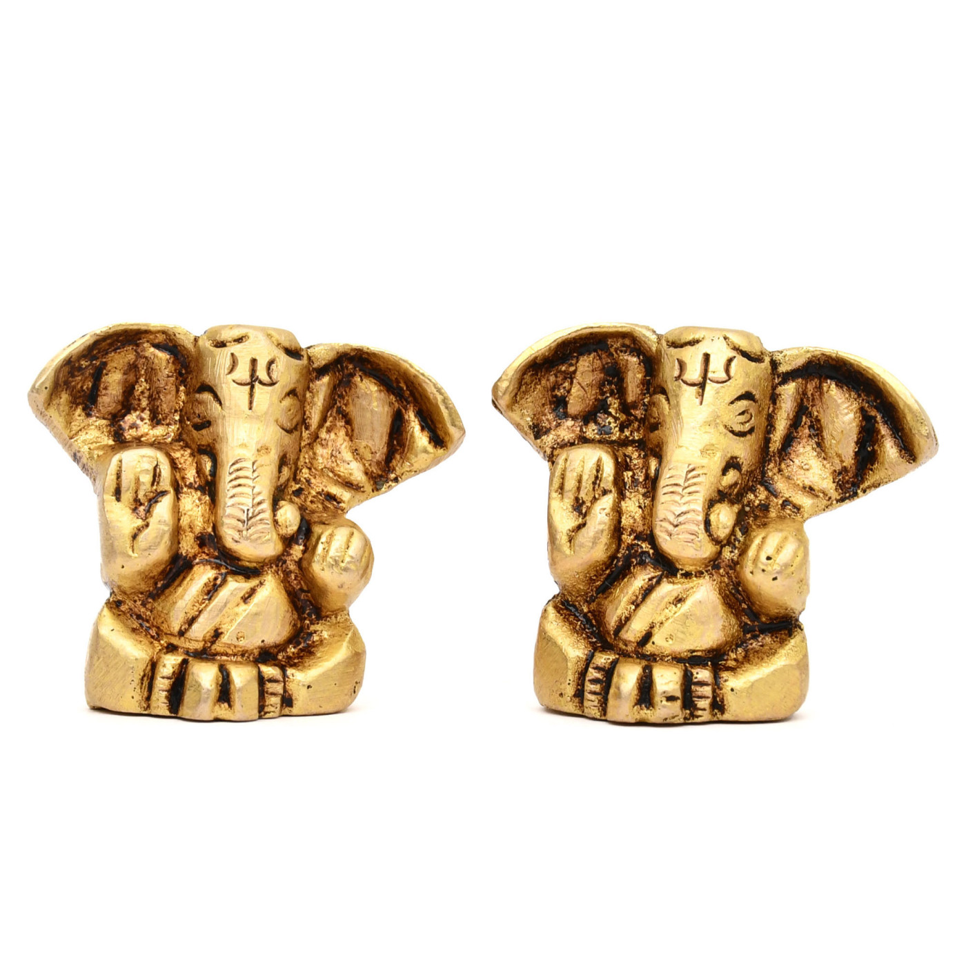 AargKraft™ Brass Ganesha Idol - 1.2 inches (Small Size Set of 2) | Home Decor | Ganesh Ganesha | Bal Ganesh | Ganpati Ganapati Murti Statue