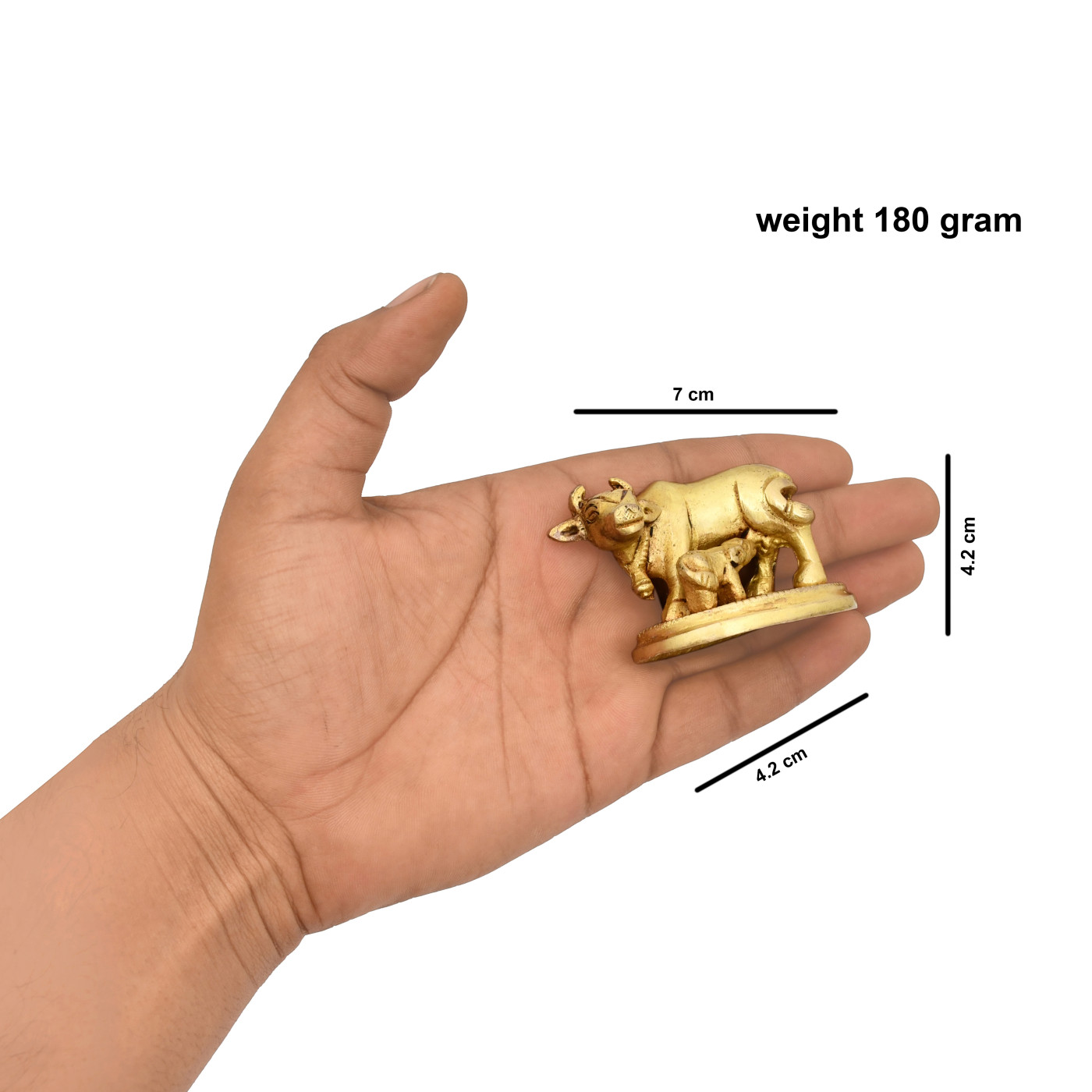 AargKraft™ Brass Golden Kamdhenu Cow with Calf, Vastu Gau MATA Idol, Spiritual Vastu Nandi Pooja Figurine Sculpture, Kamdhenu Cow & Calf Idol for Home and Office Height - 1.6 Inches Size - Small
