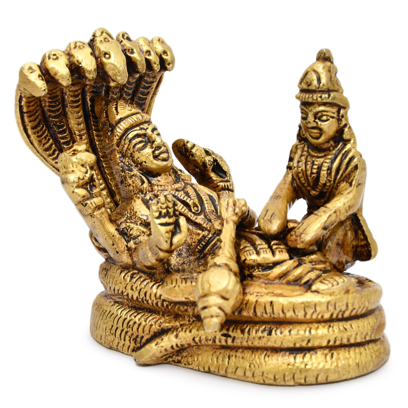 Brass Lakshmi Narayan - Lord Vishnu Laxmi in Ksheer Sagar, Height - 2.9 inch, Weight - 530 gm approx