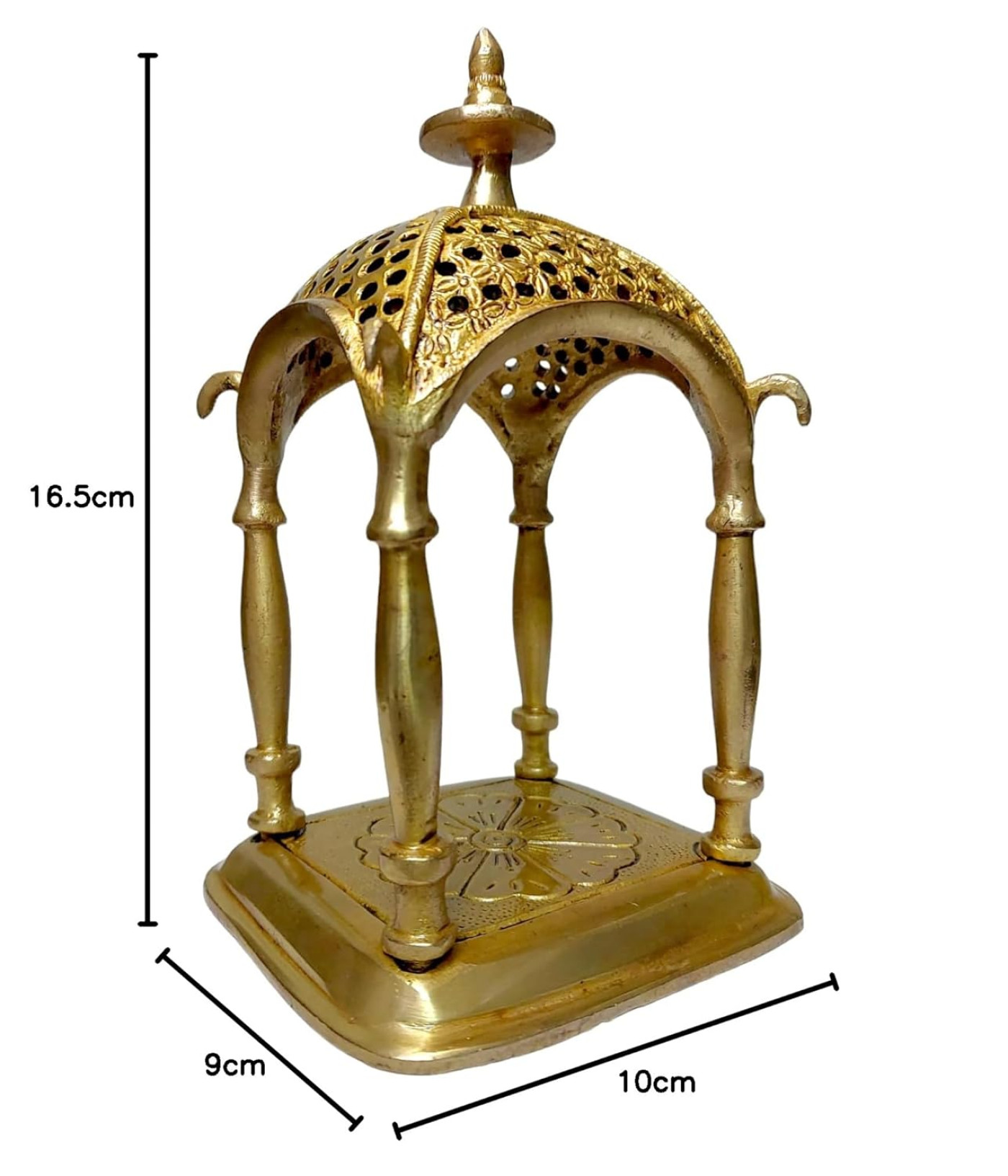 - Idol Dimensions: Length: 1.5 inches (4 cm), Width: 1.4 inches (3.8 cm), Height: 1.9 inches (5 cm), Idol Weight: Approximately 170 grams. Temple Dimensions: Length: 4 inches (10 cm), Width: 3.5 inches (9 cm), Height: 6.5 inches (16.5 cm), Temple Weight: Approximately 860 grams.
