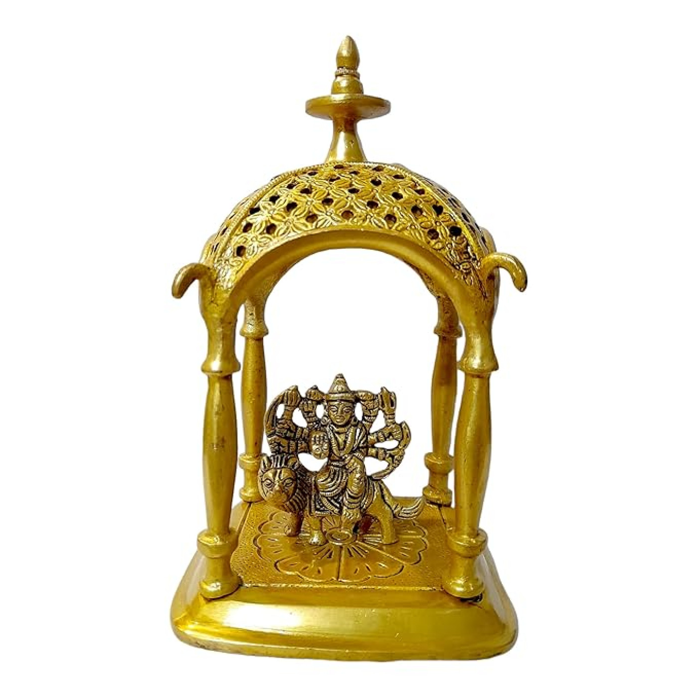 - Material: Brass | Colour: Golden | Style: Modern | Theme: Religious | Package Contents: 1 Metal Durga MATA Ji idol statue | Care Instruction: Clean With Dry Cloth