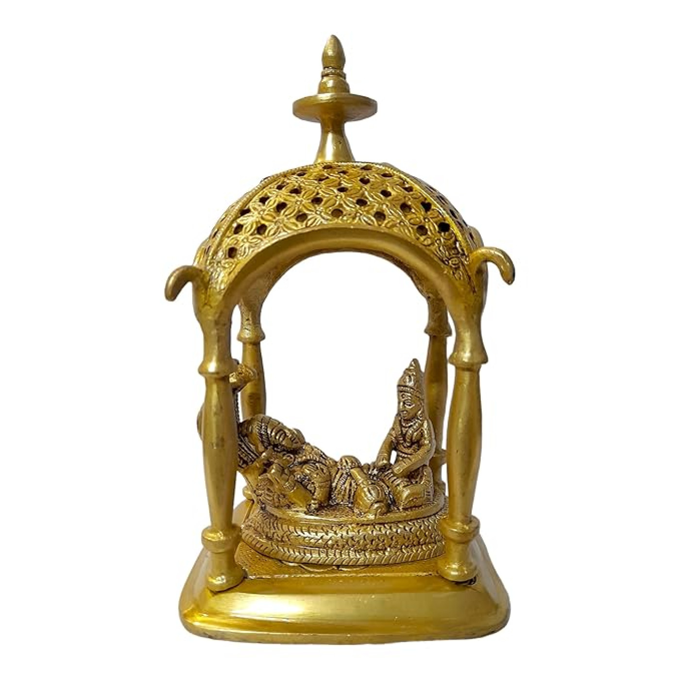 • Material: Brass | Colour: Golden | Style: Modern | Theme: Religious | Package Contents: 1 Metal Vishnu Lakshmi Idol with Sheshnaag statue | Care Instruction: Clean With Dry Cloth