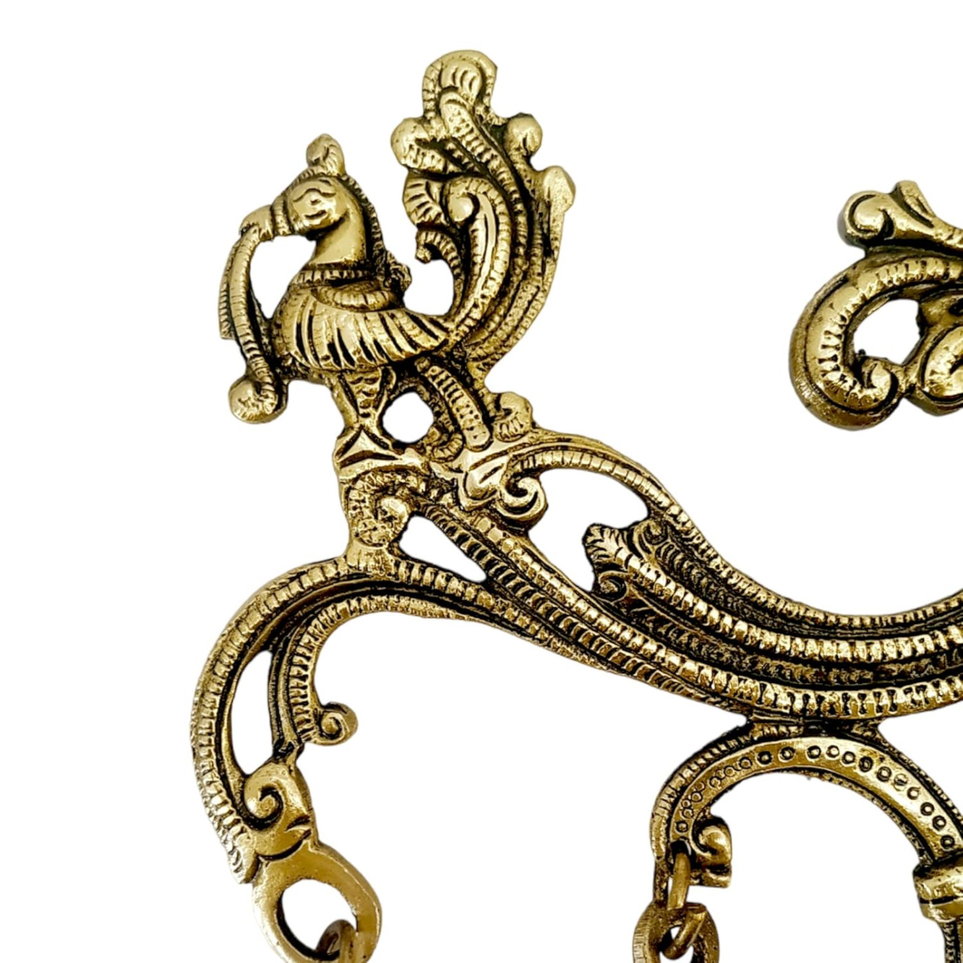 Brass Wall Bracket Wall Hanger for Hanging Diya Lamp | Wall Decor | Peacock with Bells
