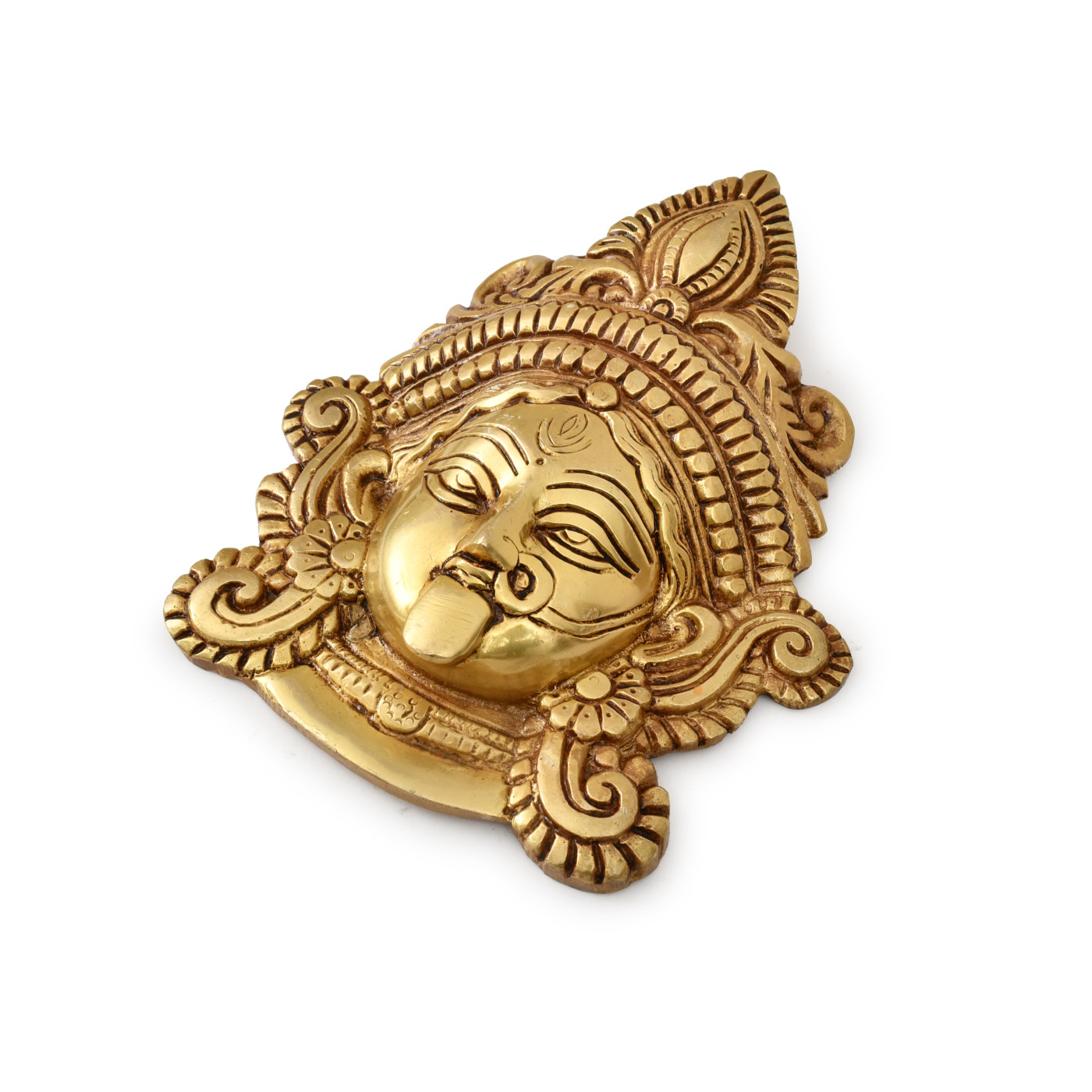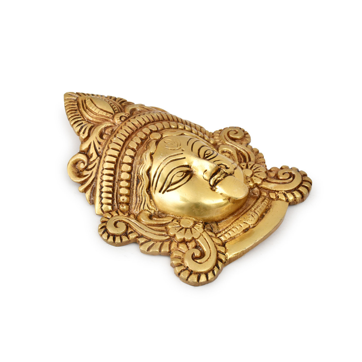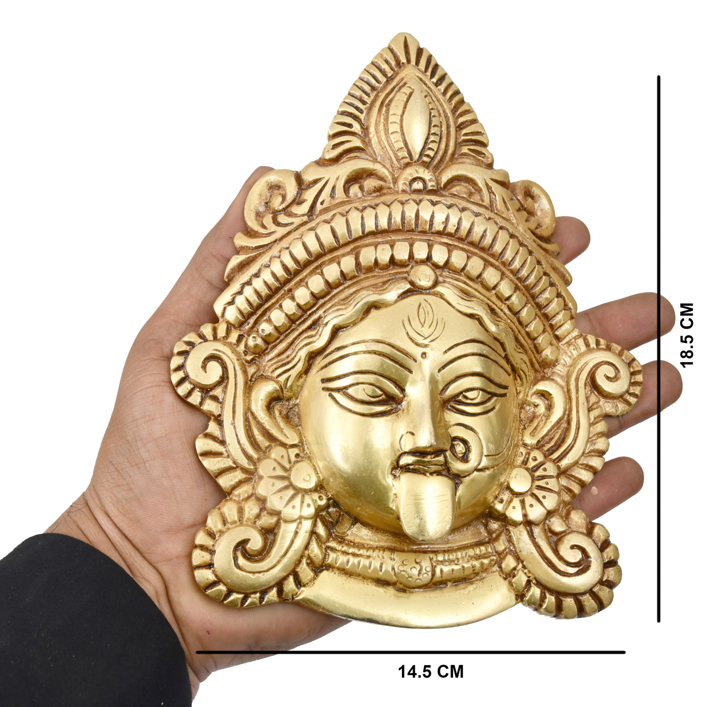 AARGKRAFT Brass Wall Hanging Kali Maa Face Statue | Handcrafted Indian Religious Mahakali Sculpture | Kaliface Decorative Puja Figurine Idol for Home, Shop, Office, Gifting Purpose (Golden)