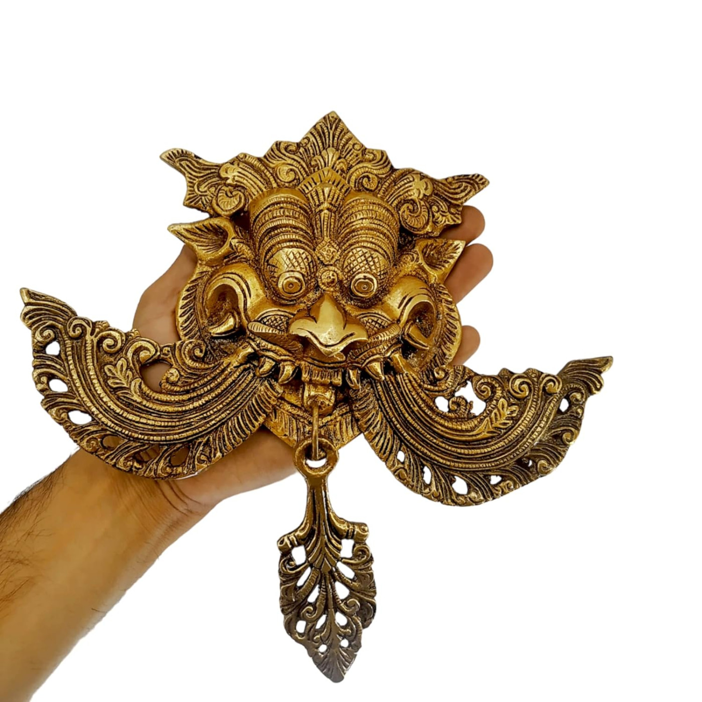 AARGKRAFT Brass Yali Evil Eye Protector Nazar Battu Home Office Wall Hanging, Antique Golden Finish