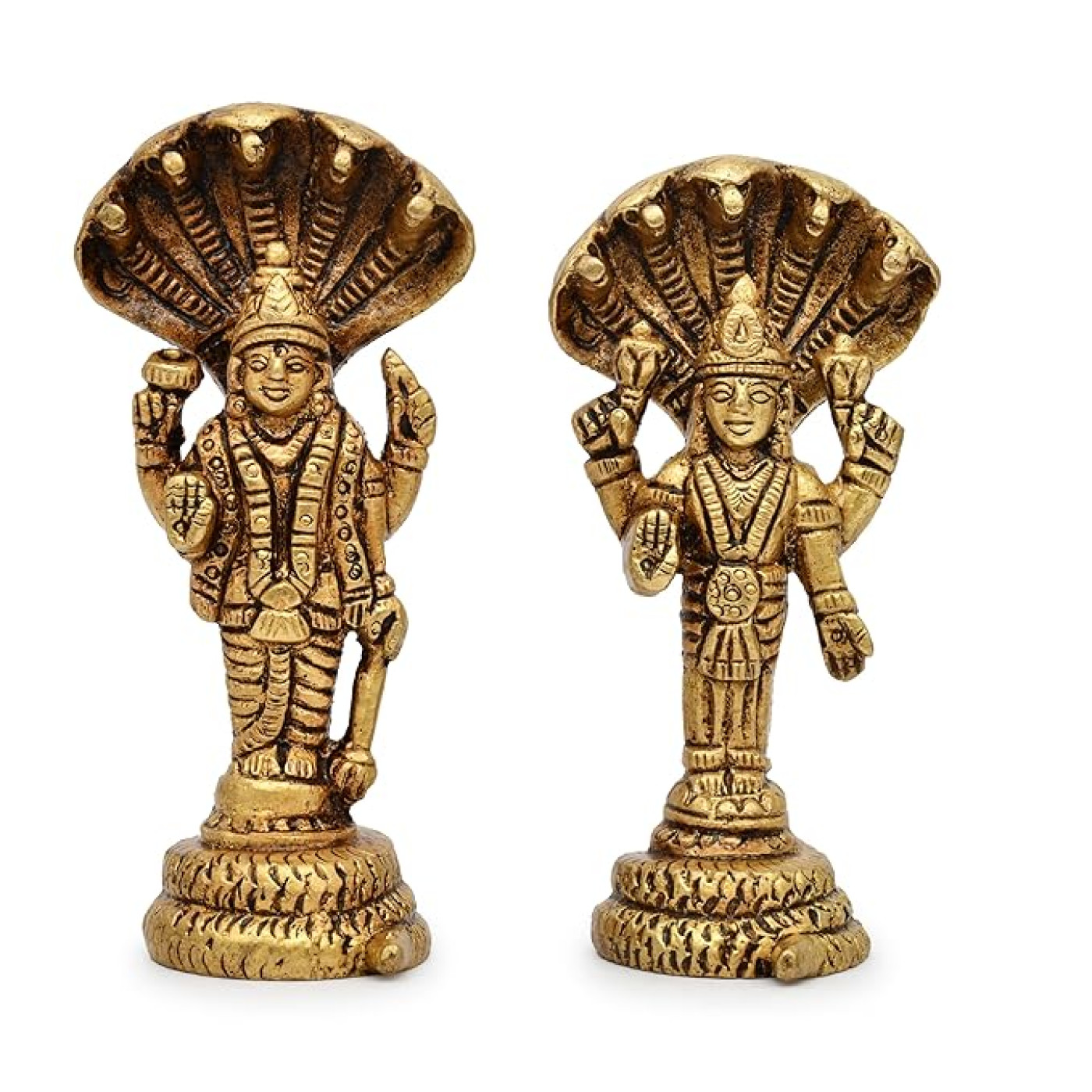 - Divine Representation of Vishnu and Laxmi: The AargKraft Brass Vishnu Laxmi Idol beautifully depicts Lord Vishnu and Goddess Laxmi seated on Sheshnag. This idol symbolizes prosperity, protection, and divine blessings, offering harmony and spiritual upliftment to your home, office, or workplace.