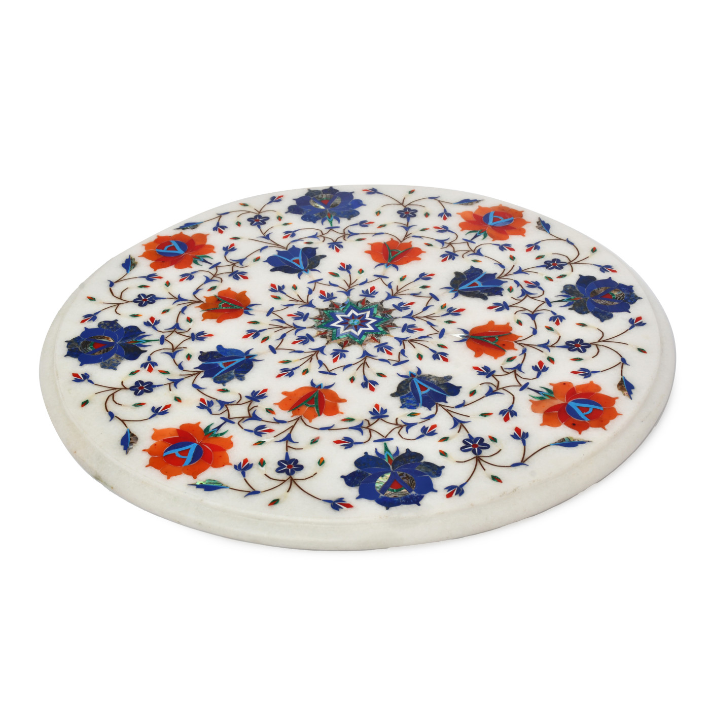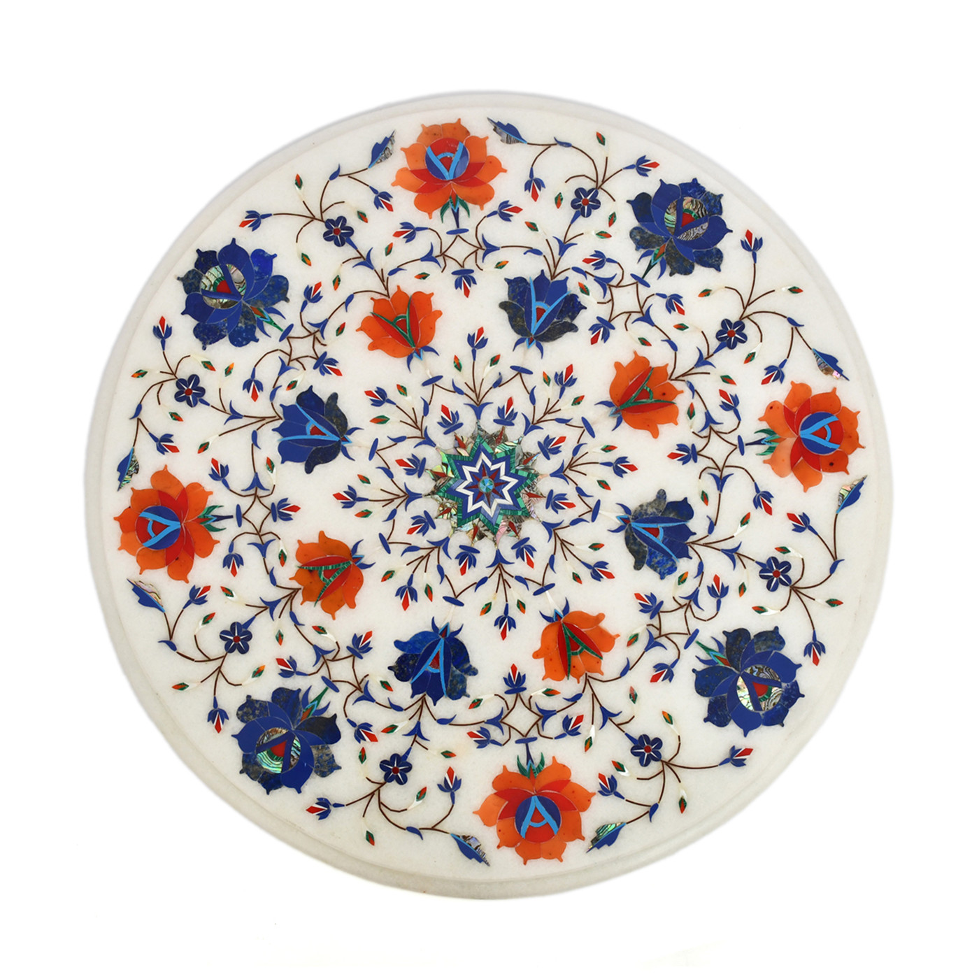 AargKraft Handmade White Orange Marble Table Top with Intricate Inlay Work Marble Coffee/Corner Table Top with Pietre Dura Artwork/Inlay Work, 15-Inch Round