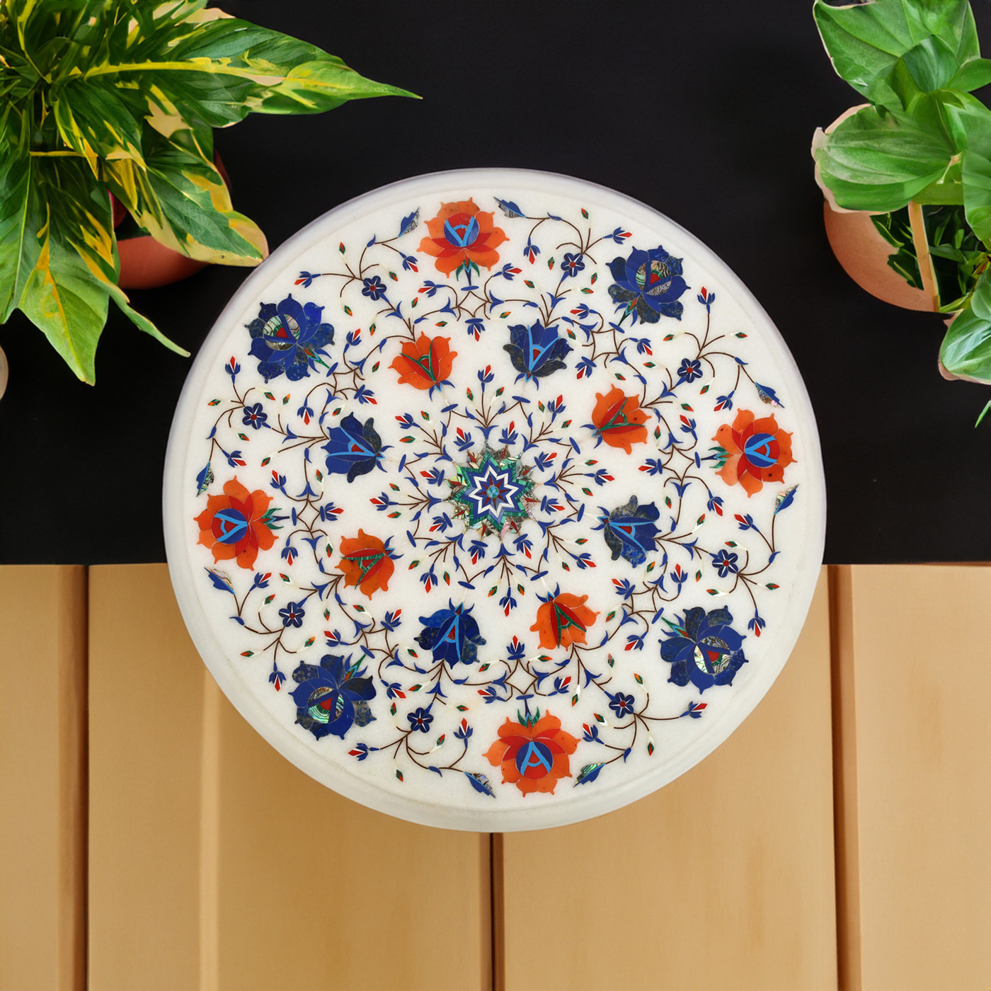 - Dimensions: Measures 15 inches in diameter, fitting seamlessly into various spaces and styles. Note:- There may be slightly difference of the stone colour due to availability of stone.