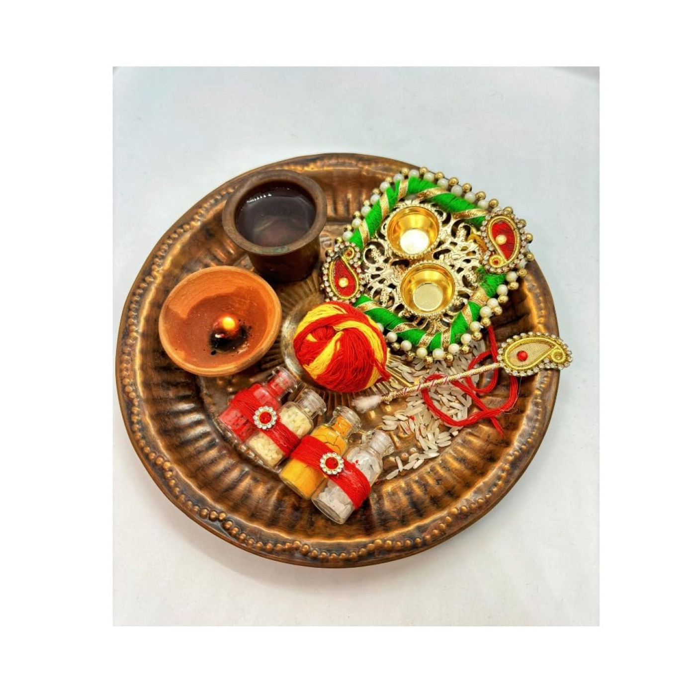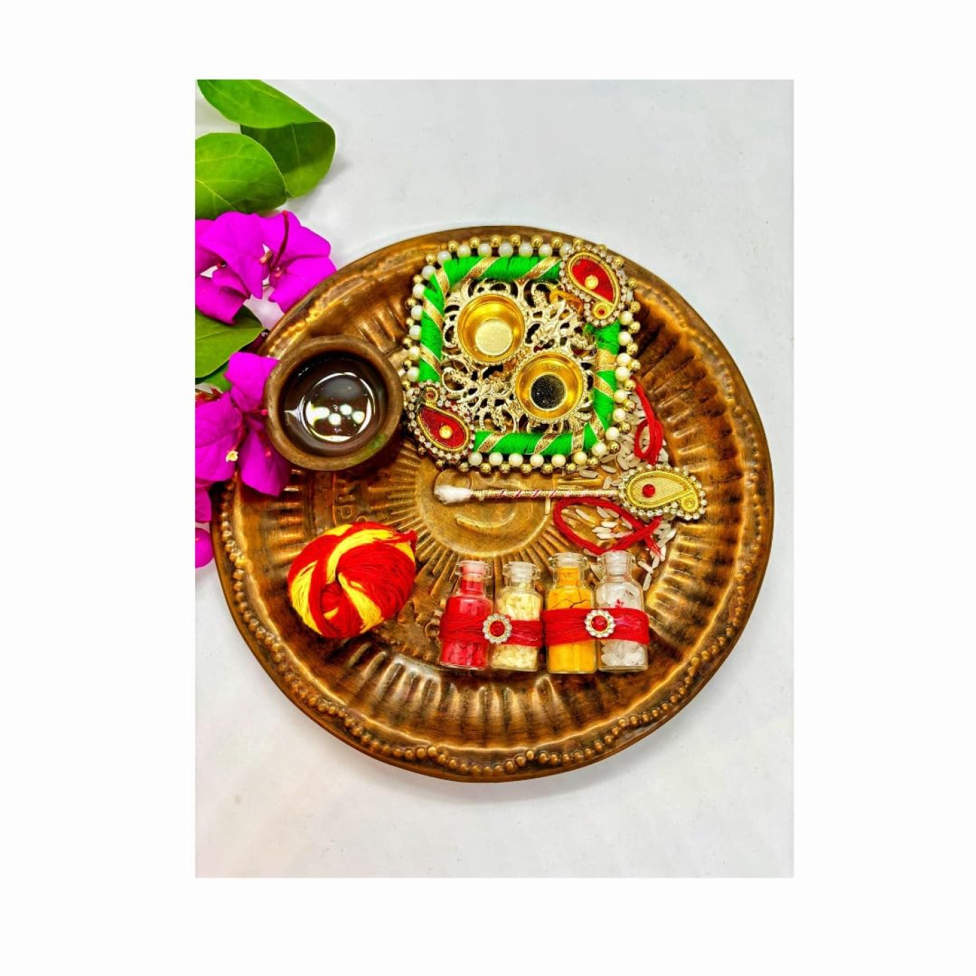 - High-Quality Ingredients: Includes premium puja samagri like 1 Plate,1 Tika Stick, 2Pooja Bowls, 1 Moli, 4 bottles of each rice, Turmeric, Crystalized Sugar, ensuring a pure and authentic worship experience.