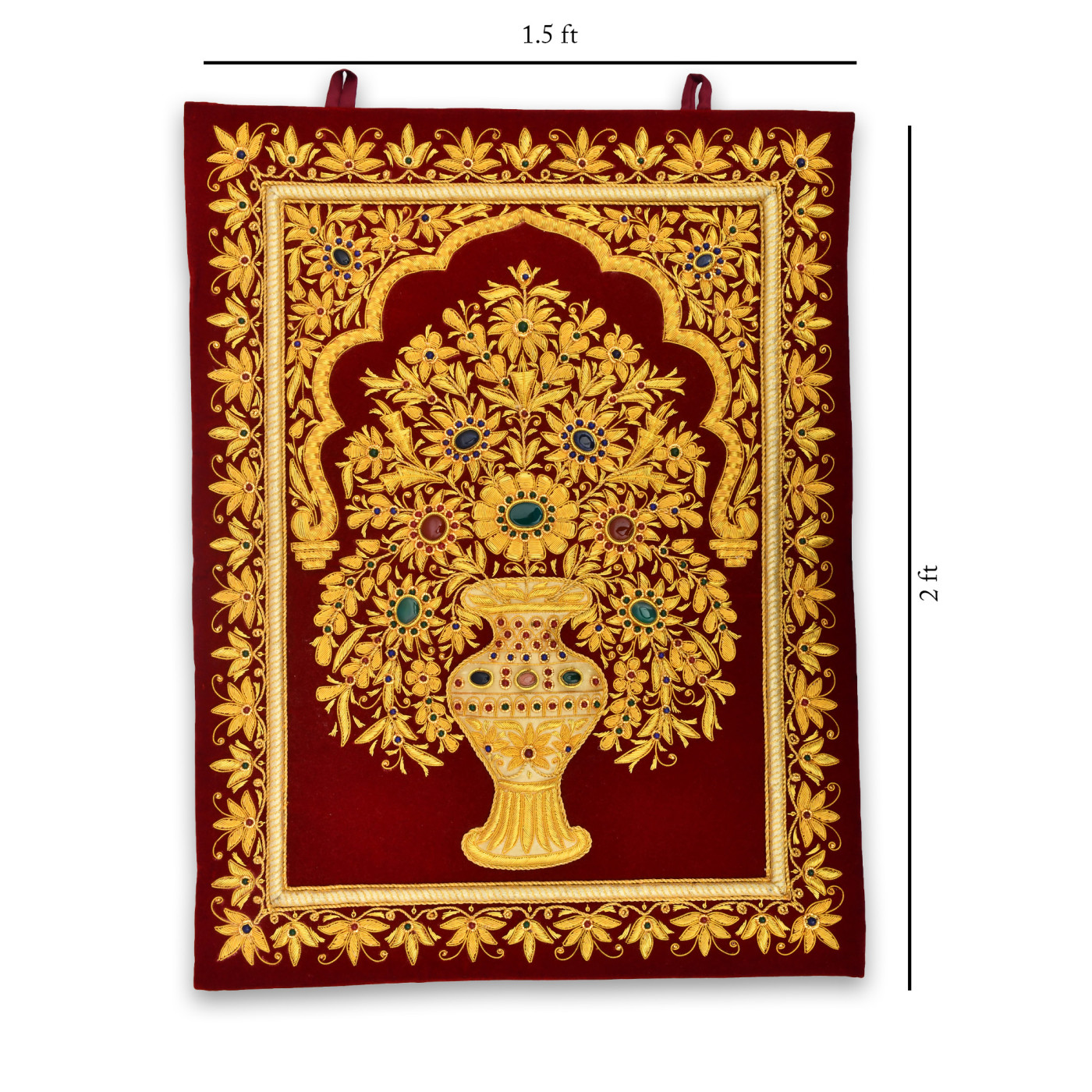 AargKraft™ Royal Ancient Zardozi Jewel Art Wall Hanging, Hand Embroided - Red Velvet, Zardosi Wall hanging 18 x 24 inch
