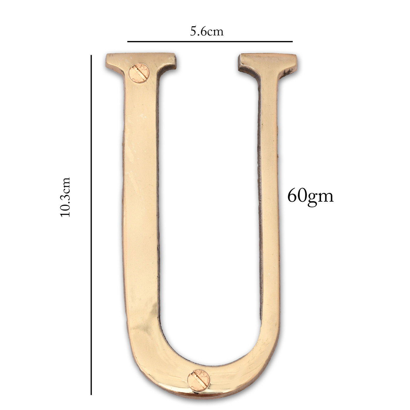 - Product Details: 1 Alphabet (U) | 2 Installation Screws | Height- 4 inches | Material: Brass.