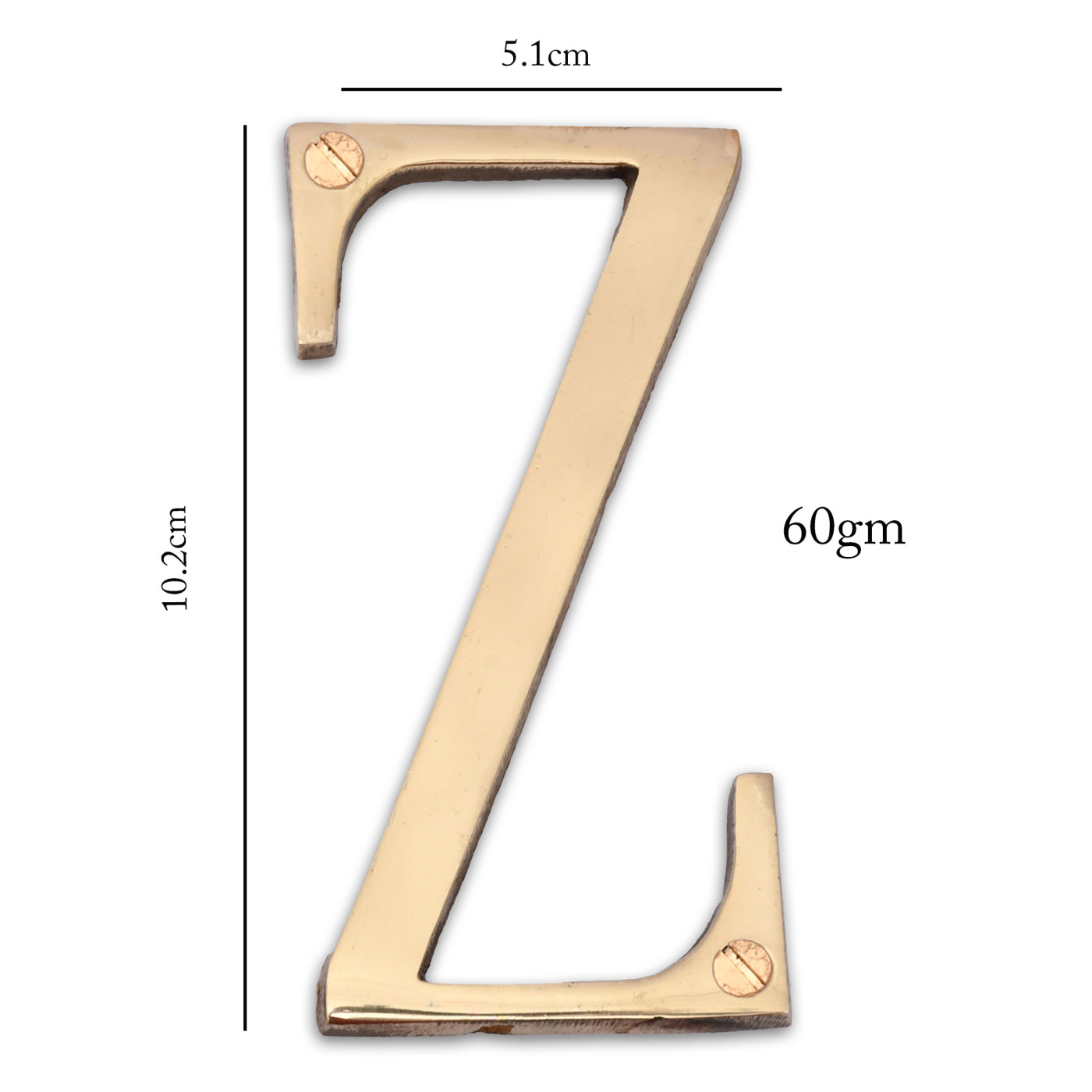 • Product Details: 1 Alphabet (Z) | 2 Installation Screws | Height- 4 inches | Material: Brass.