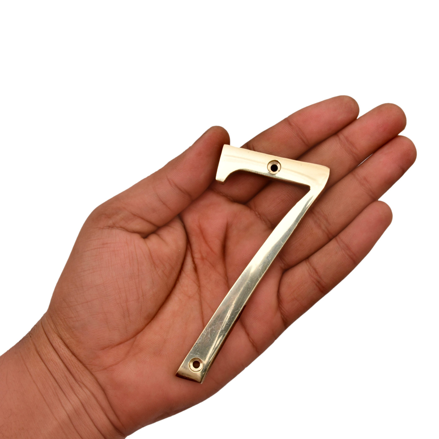 • Product Details: 1 Numeral [Digit 7], 2 Installation Screws, Size: 4 x 2 inches, Weight: 60 Gram Material: Brass.
