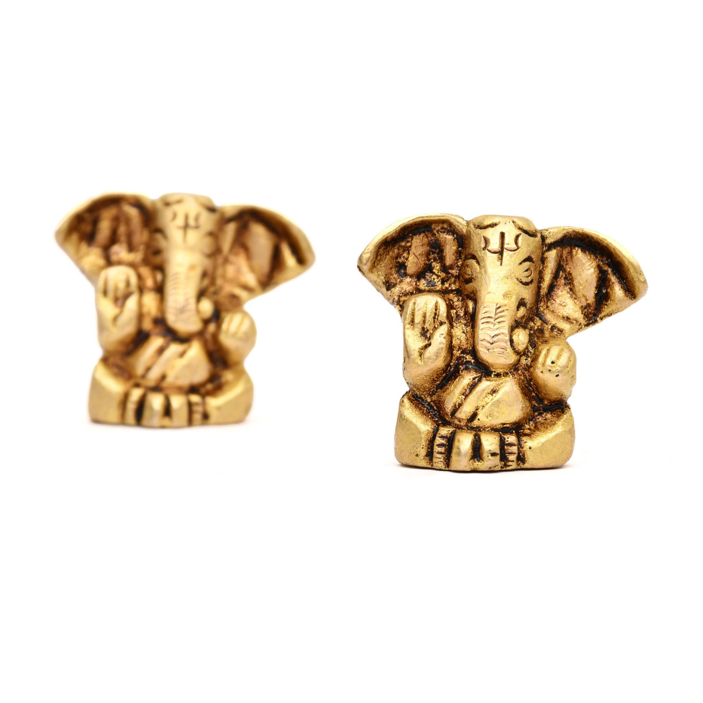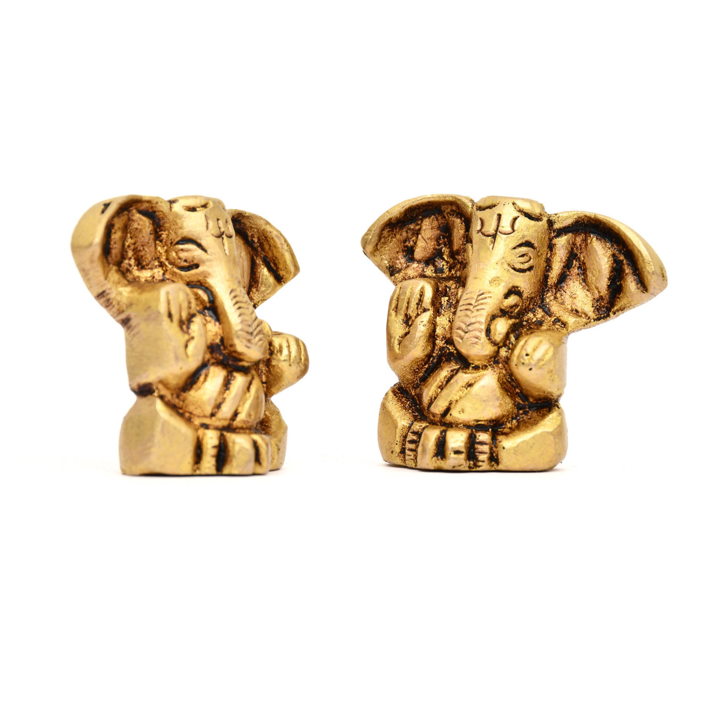 AargKraft™ Brass Ganesha Idol - 1.2 inches (Small Size Set of 2) | Home Decor | Ganesh Ganesha | Bal Ganesh | Ganpati Ganapati Murti Statue