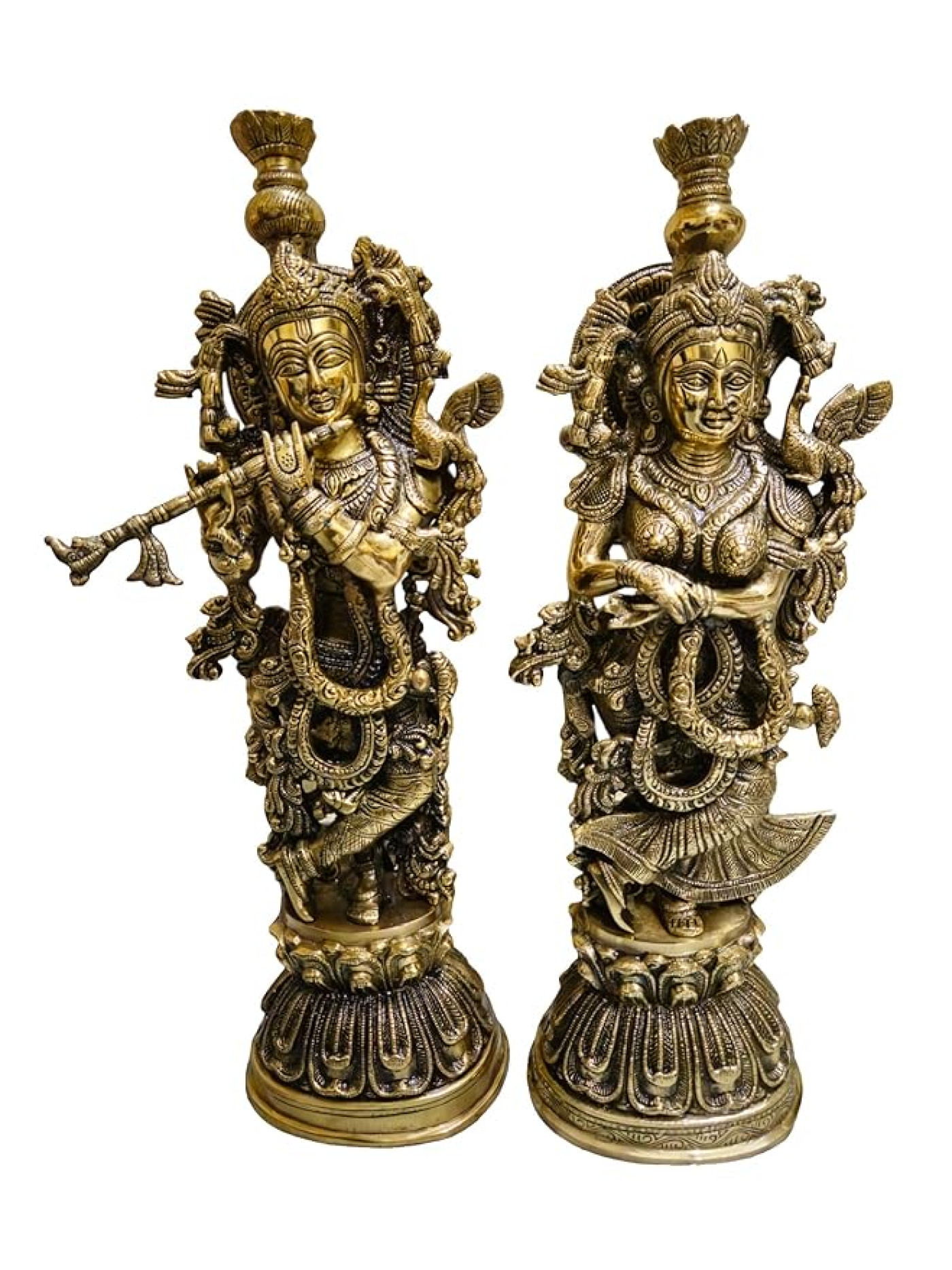 - Material: Brass | Colour: Golden Brass | Style: Modern | Theme: Religious | Package Contents: 2 Metal Radha Krishna idol statue | Care Instruction: Clean With Dry Cloth