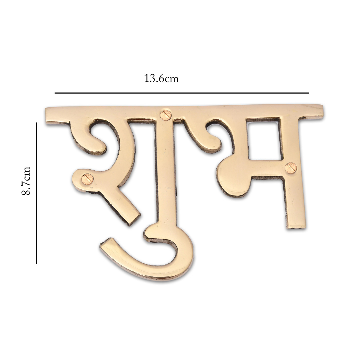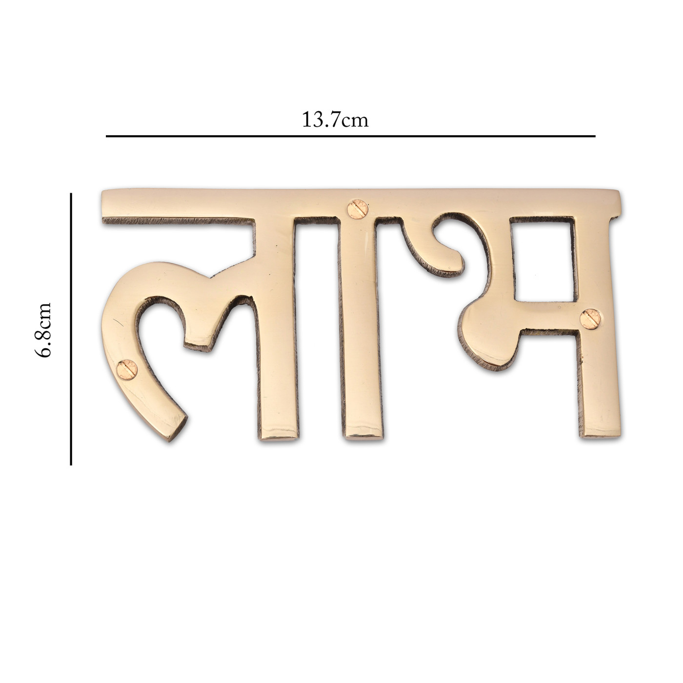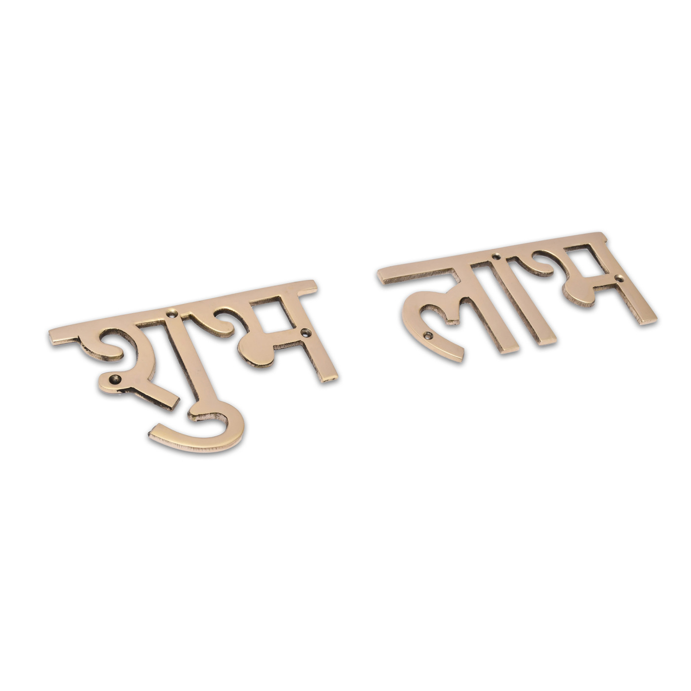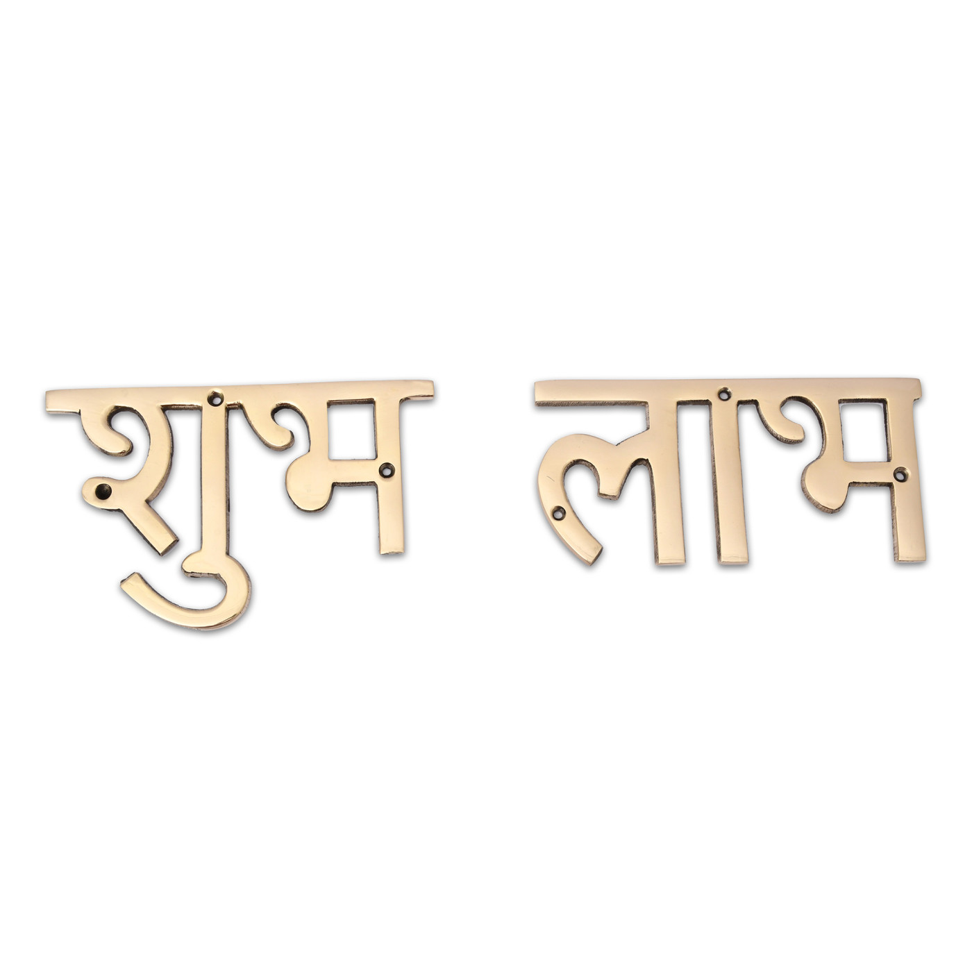 - Product Details:- Size Shubh- 4.8x2.4x0.15 inch Labh - 5.2x2.4x0.15 inch each, Weight: 190 grams Material Used: Brass Metal, Contents: Words - Shubh + Labh along with 6 Screws.