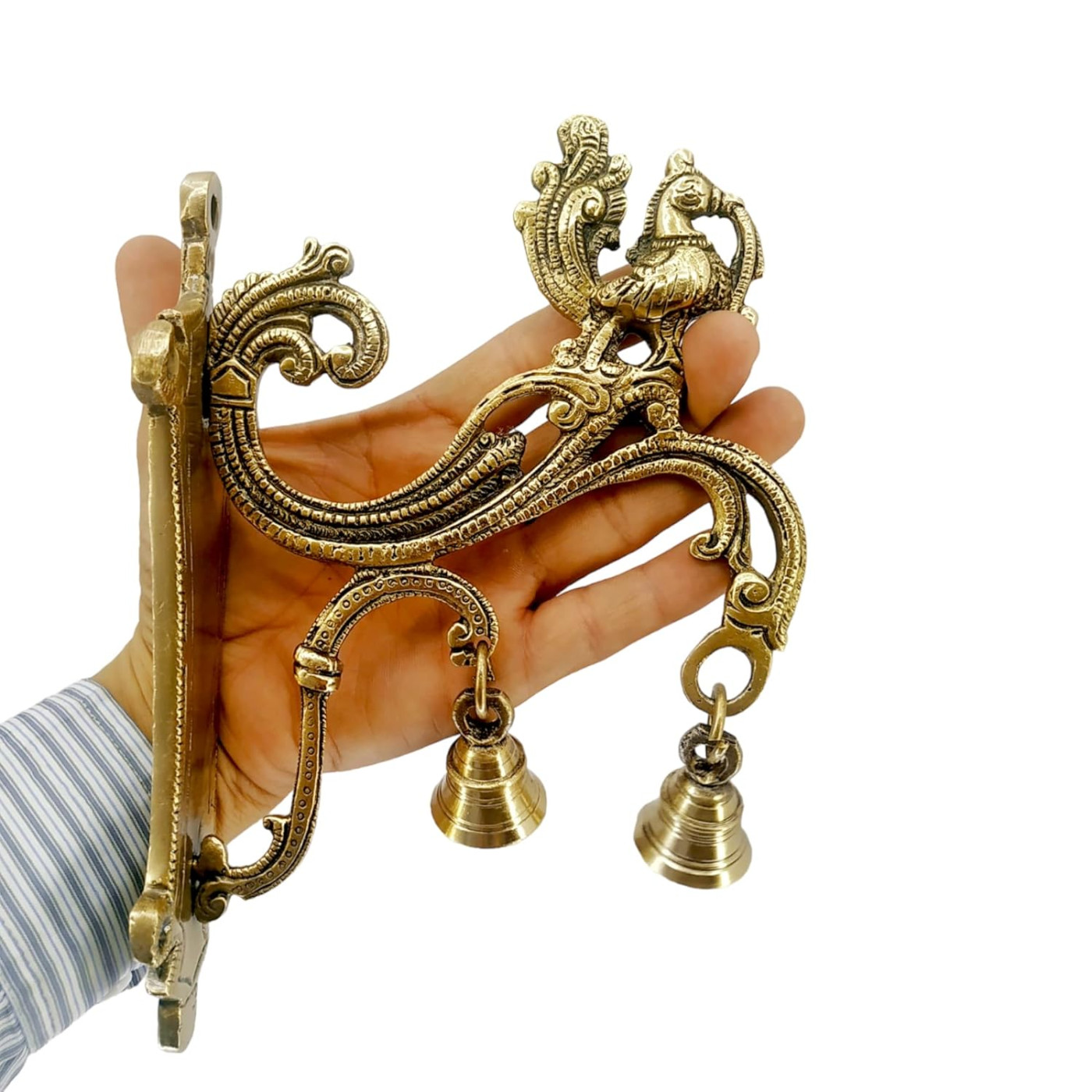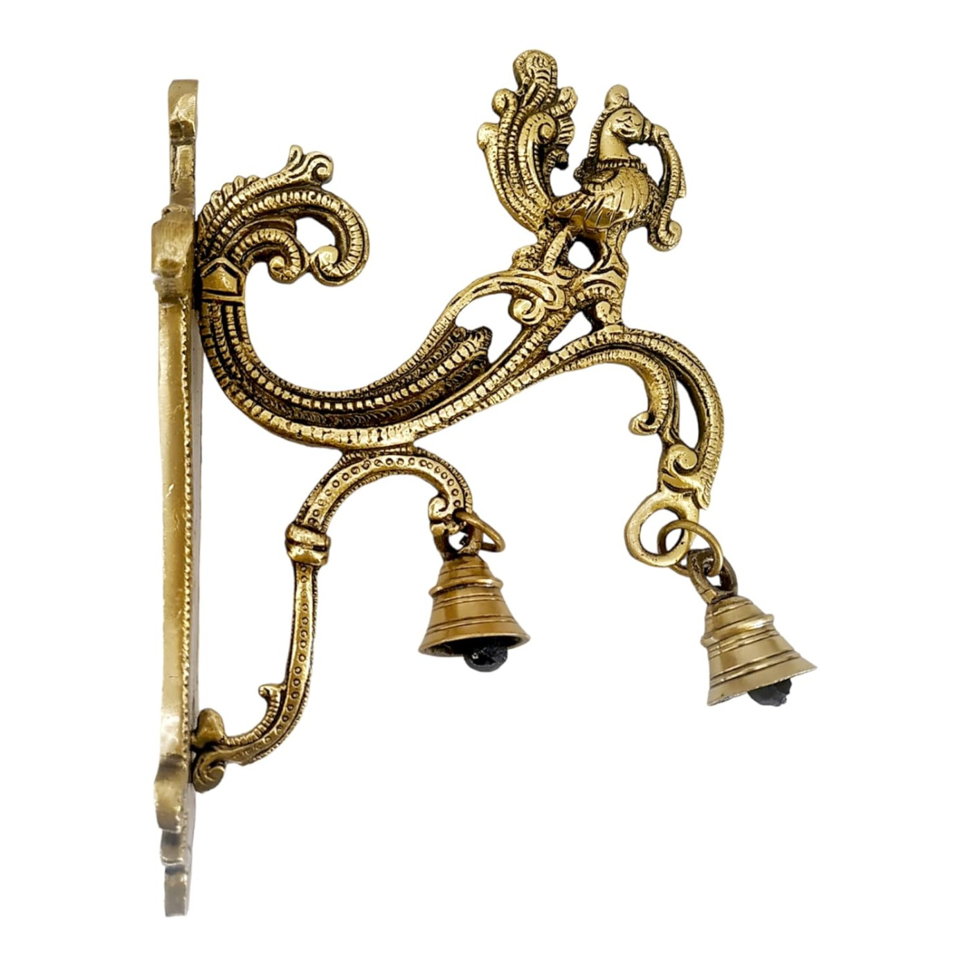 AARGKRAFT Brass Wall Bracket Wall Hanger for Hanging Diya Lamp | Wall Decor | Peacock with Bells