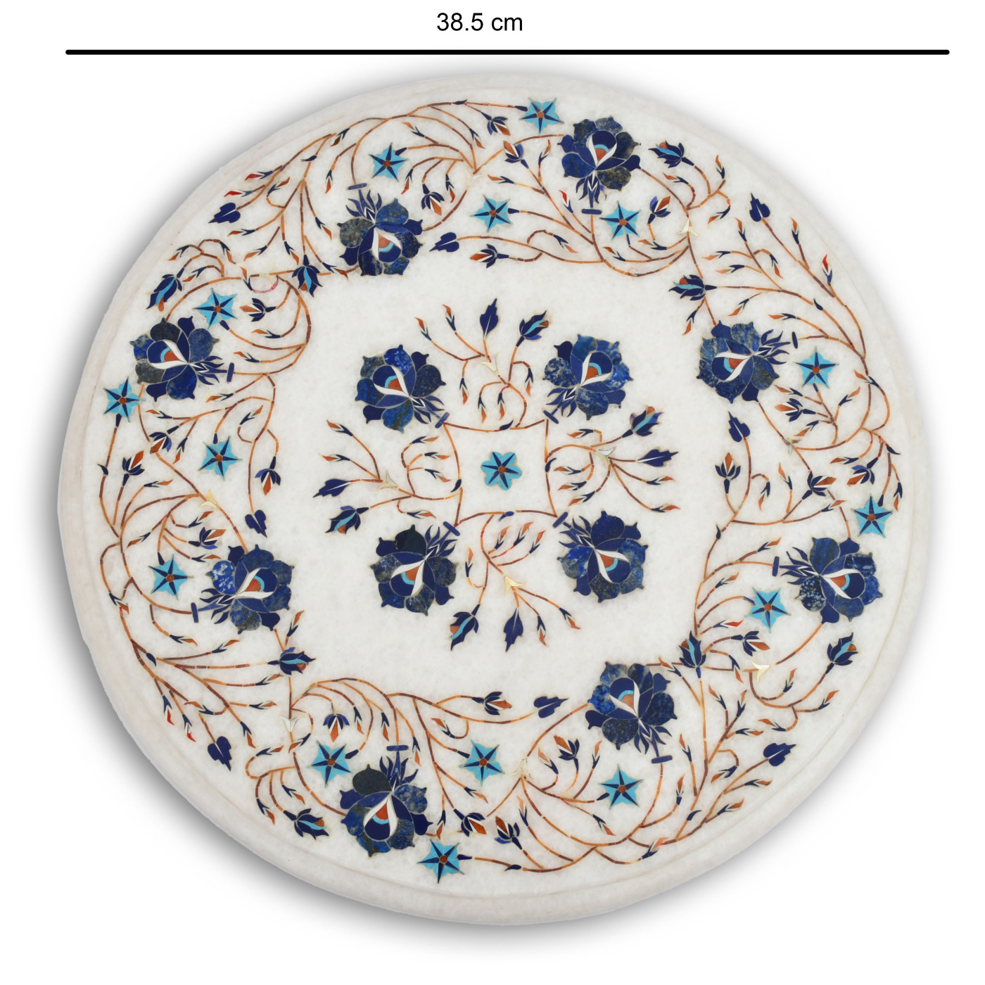 - Dimension: Size : 15" Diameter Colour: White Blue, Material: Marble Weight: 2.5- 3 Kgs