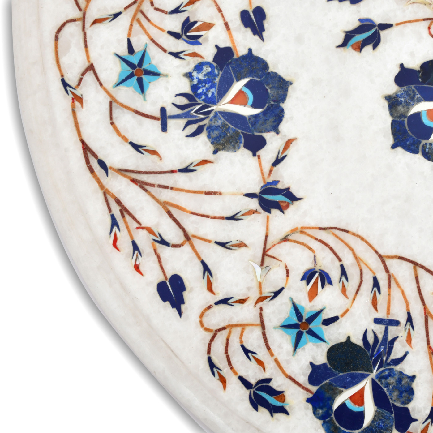 AARGKRAFT Handcrafted Marble Coffee Table Top with Intricate Inlay Work for Coffe Table | Floral Design Corner Table Top with Pietre Dura Artwork, (White, Blue)