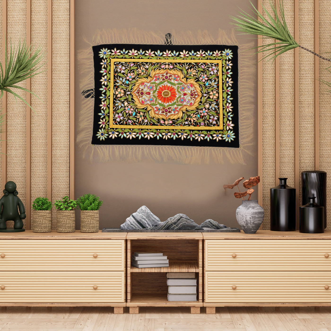 AargKraft™ Royal Ancient Zardozi Jewel Art Wall Hanging, Hand Embroided - Black Velvet, Zardosi Wall hanging 9 x 12 inchs